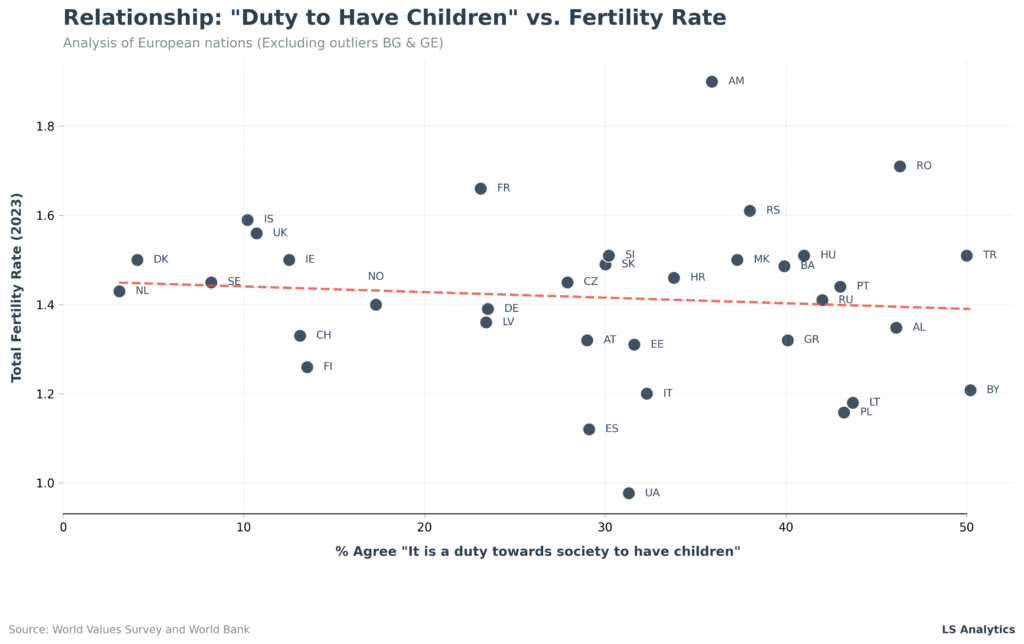 For decision-makers, the lesson is clear. If you want to fix the demographic crisis, we can’t just look at values surveys; we need to consider economic barriers. The “duty” lever is disconnected from the European reality.